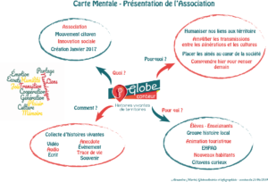 Alexandra, GlobeCollectrice a décidé de réaliser une carte mentale afin de se repérer rapidement et faciliter la présentation de GlobeConteur!